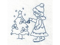 Winter Sunbonnet Girls Redwork