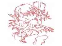 Boy Sleeping Redwork