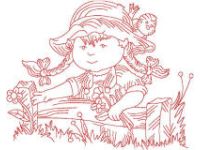 Bonnet Country Girl Redwork