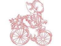 Bonnet Girl Bike Redwork